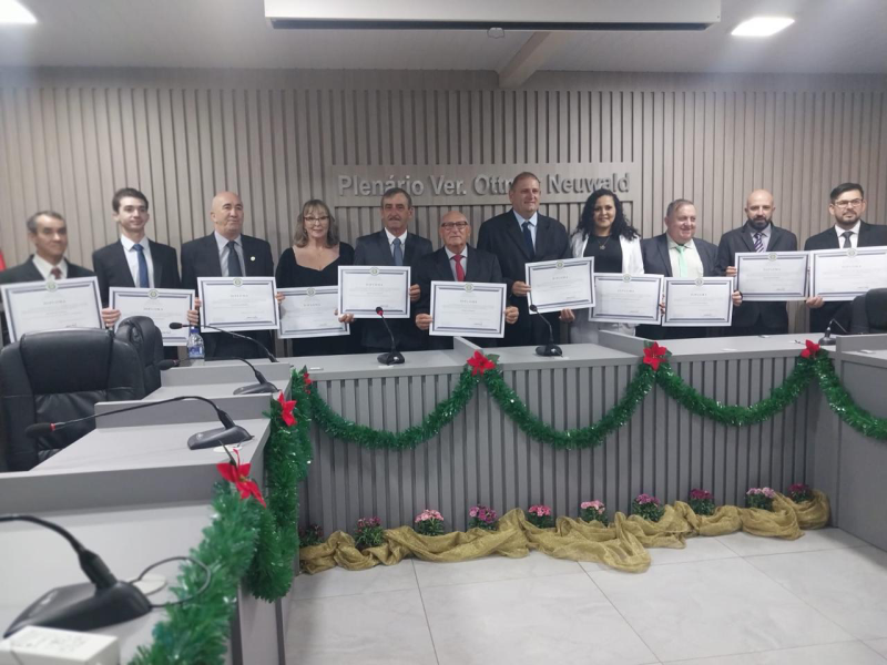 Nesta terça-feira, nas dependências do Plenário Ver. Ottmar Neuwald, aconteceu a diplomação do Prefeito, Vice-Prefeito e Vereadores do município de Saldanha Marinho, pertencente à 115º Zona Eleitoral.