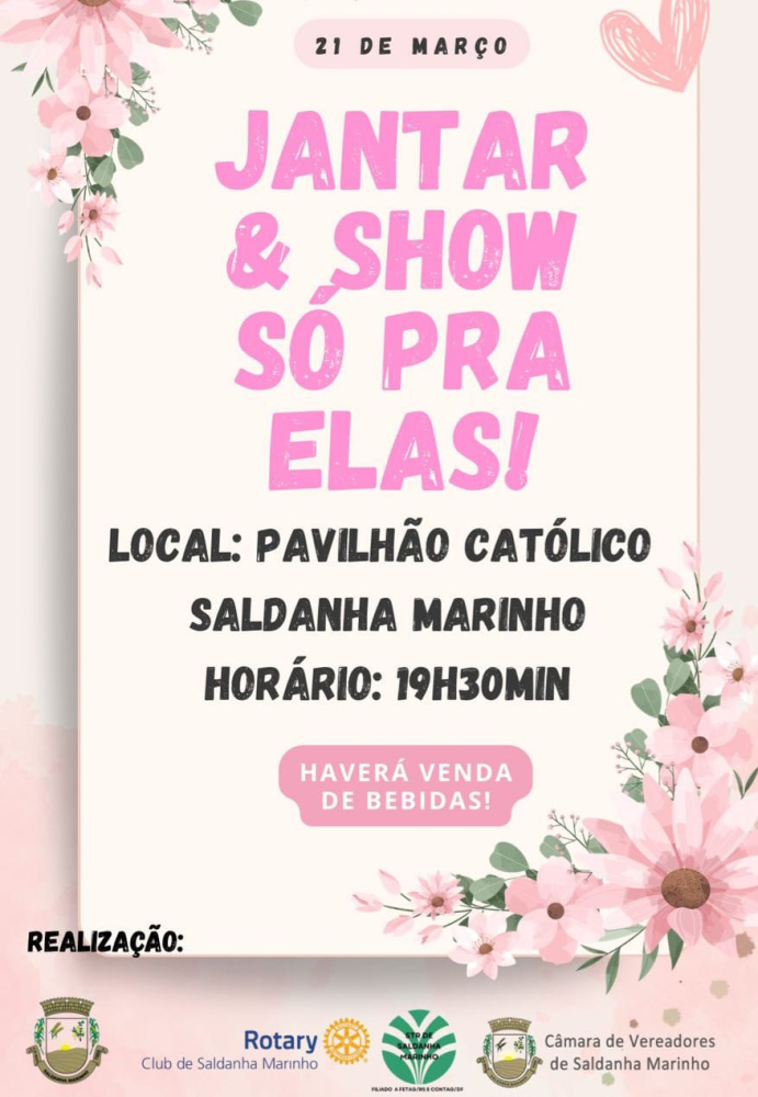 A Câmara de Vereadores de Saldanha Marinho, tem a honra de convidar todas as Mulheres do Município para participar do 1º Jantar Show Só para Elas.