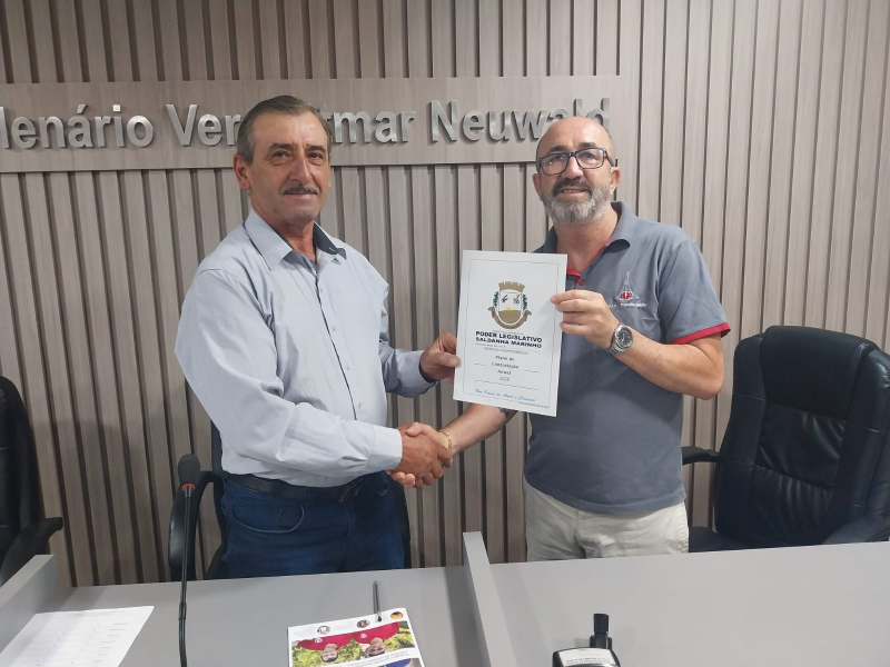 Nesta segunda-feira, 05 de janeiro de 2026, realizou-se, no Plenário da Câmara de Vereadores o ato simbólico de posse do Vereador Juraci José Araldi, que assume a Presidência do Legislativo para o ano de 2026.