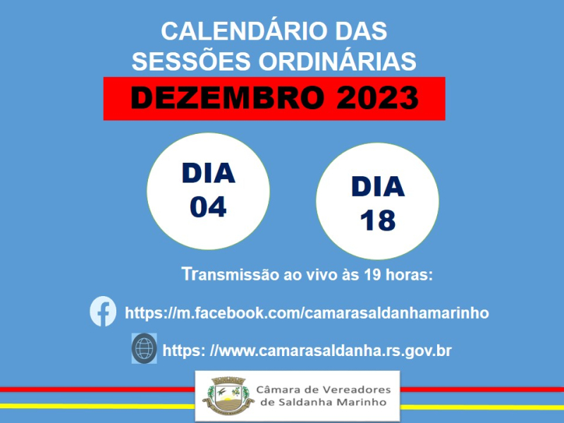 Calendário Sessões Ordinárias dezembro/2023