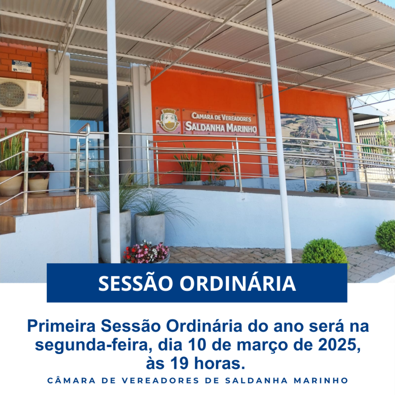 No dia 10 de março de 2025, será realizada a Primeira Sessão Ordinária do ano de 2025, às 19 horas, no Plenário Ver. Ottmar Neuwald.