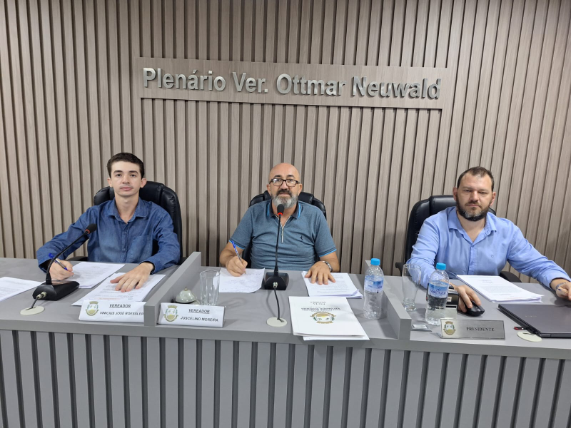 Nesta segunda-feira, dia 10, às 19h, nas dependências do Plenário Ver. Ottmar Neuwald, foi realizada a Primeira Sessão Ordinária do Ano de 2025 e da 10ª Legislatura, presidida pelo Ver. Juscelino Moreira (PP).
